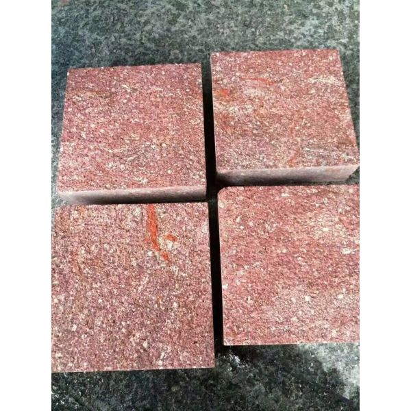 red porphyry granite basalt paving stone paver, split, natural, flamed, sawn